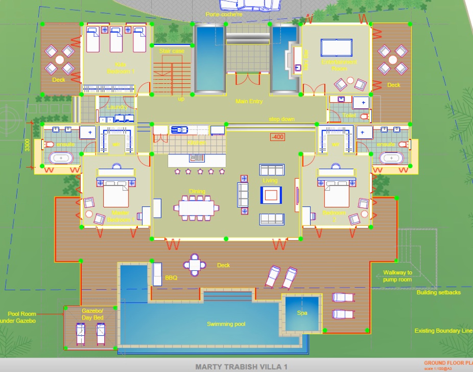 Designed by Pacific leading architect Sharma Architects. Includes 4 suite king size bedrooms with each having their own private balcony. A room is also designed for kids in the east corner of the villa. The layout of this villa is such as to cater for great pacific style dinners. Since the owners of this villa are hobby cooks, the kitchen is designed to be the center heartbeat of this gorgeous micro resort pool villa.